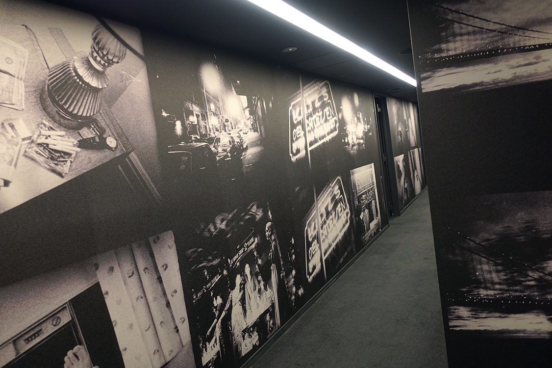 長澤氏の指示の元、2015 年夏頃から現地ロケハンを行ない、森山大道氏の写真作品をモチ ーフとした内装デザインをホテルの設計図面と照らしあわせながらドラフトから組み上げ、 幾度も CG によるシミュレーションを重ねつつ内装の最終仕上がりチェックを施工関係者 と共有して最終段階の壁紙データ制作まで行ないました。